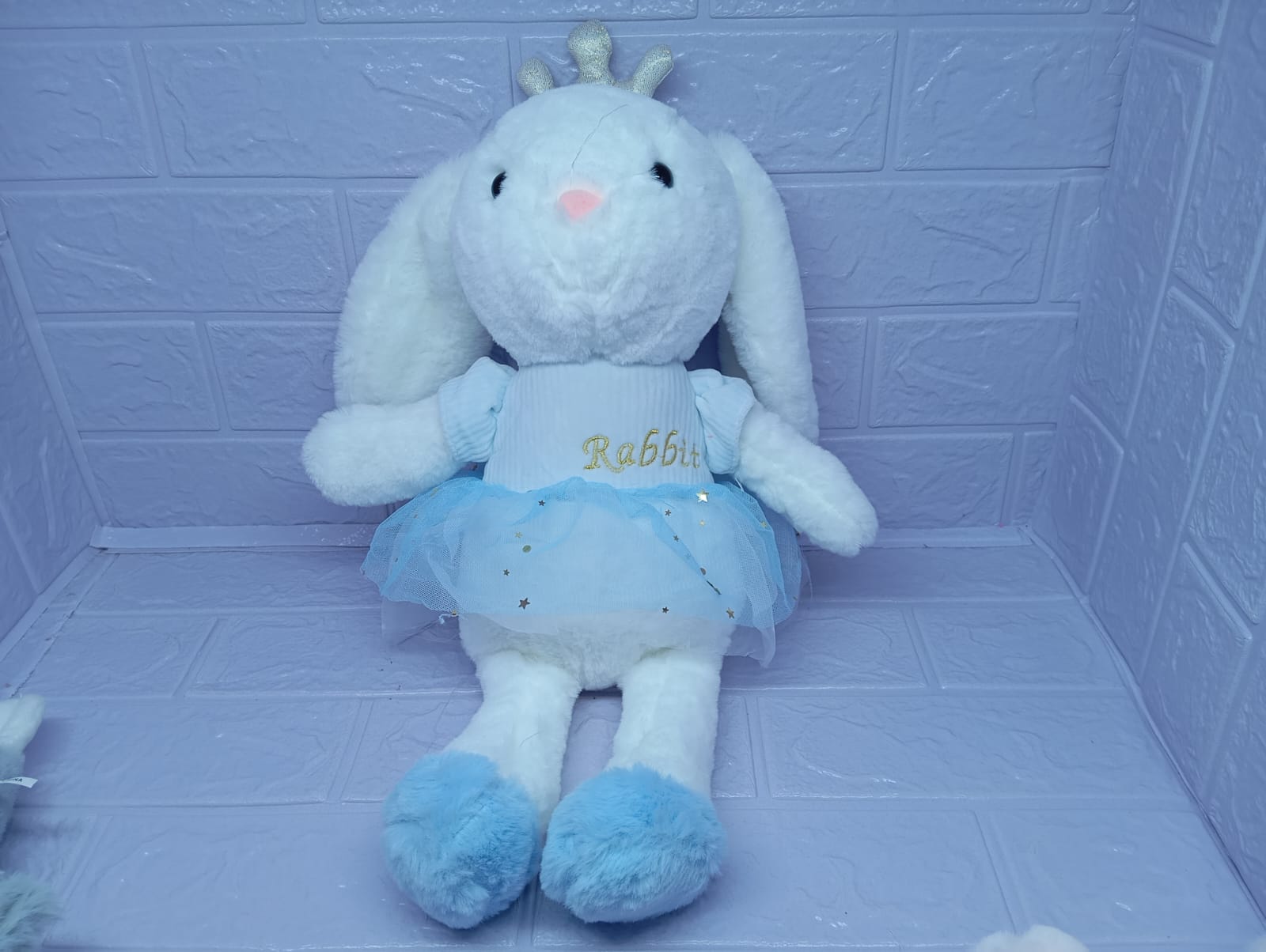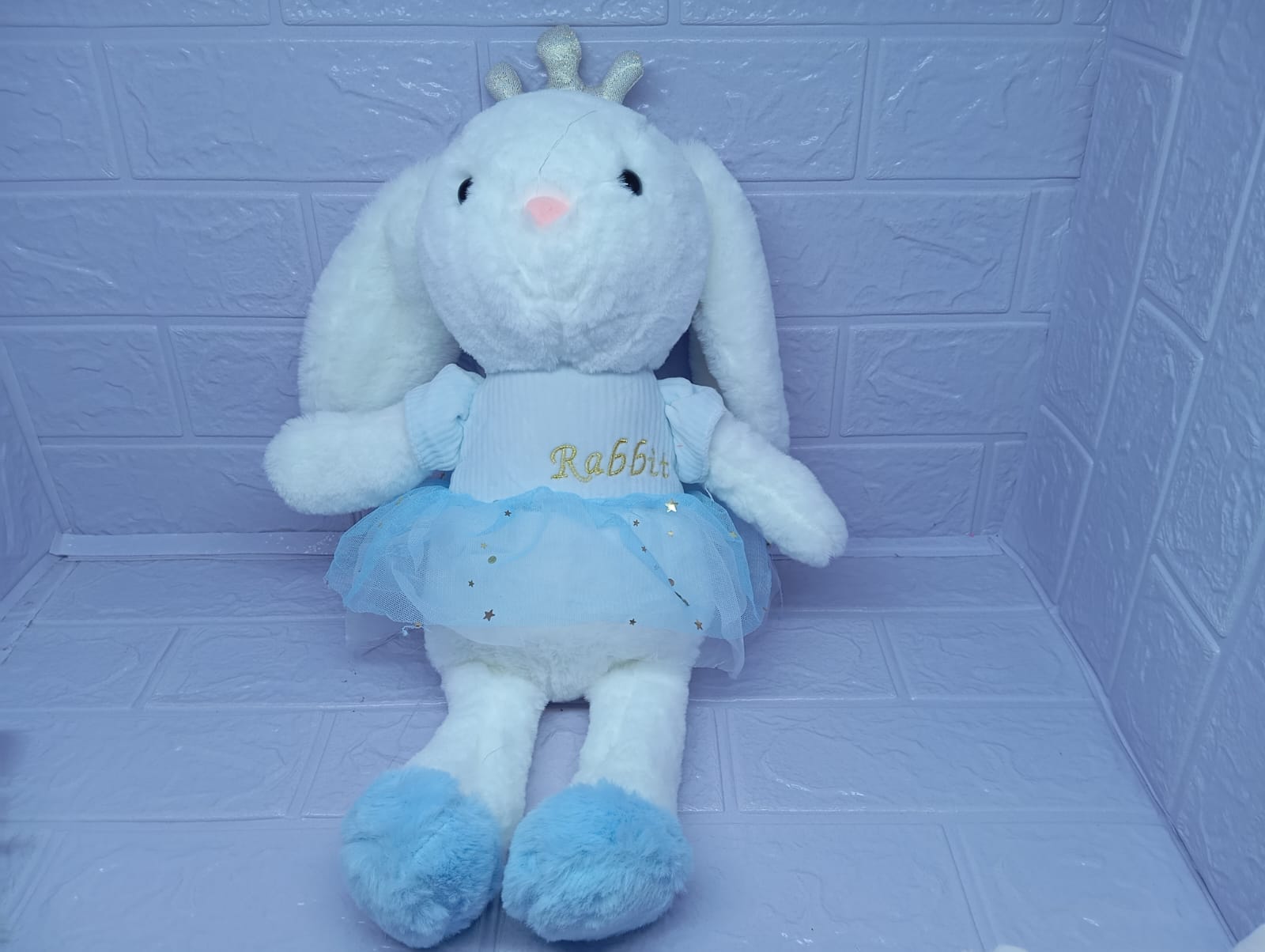 Encantadora peluche de coneja de 45 cm, vestida con un hermoso vestido de tul celeste que le añade un toque mágico. Su delicada corona completa su look, convirtiéndola en la compañera perfecta para cualquier pequeña soñadora. Con suaves acabados y una apariencia adorable, este peluche no solo es perfecto para abrazar, sino que también es un regalo ideal para ocasiones especiales. ¡Deja que esta coneja llene de alegría el corazón de quien la reciba!