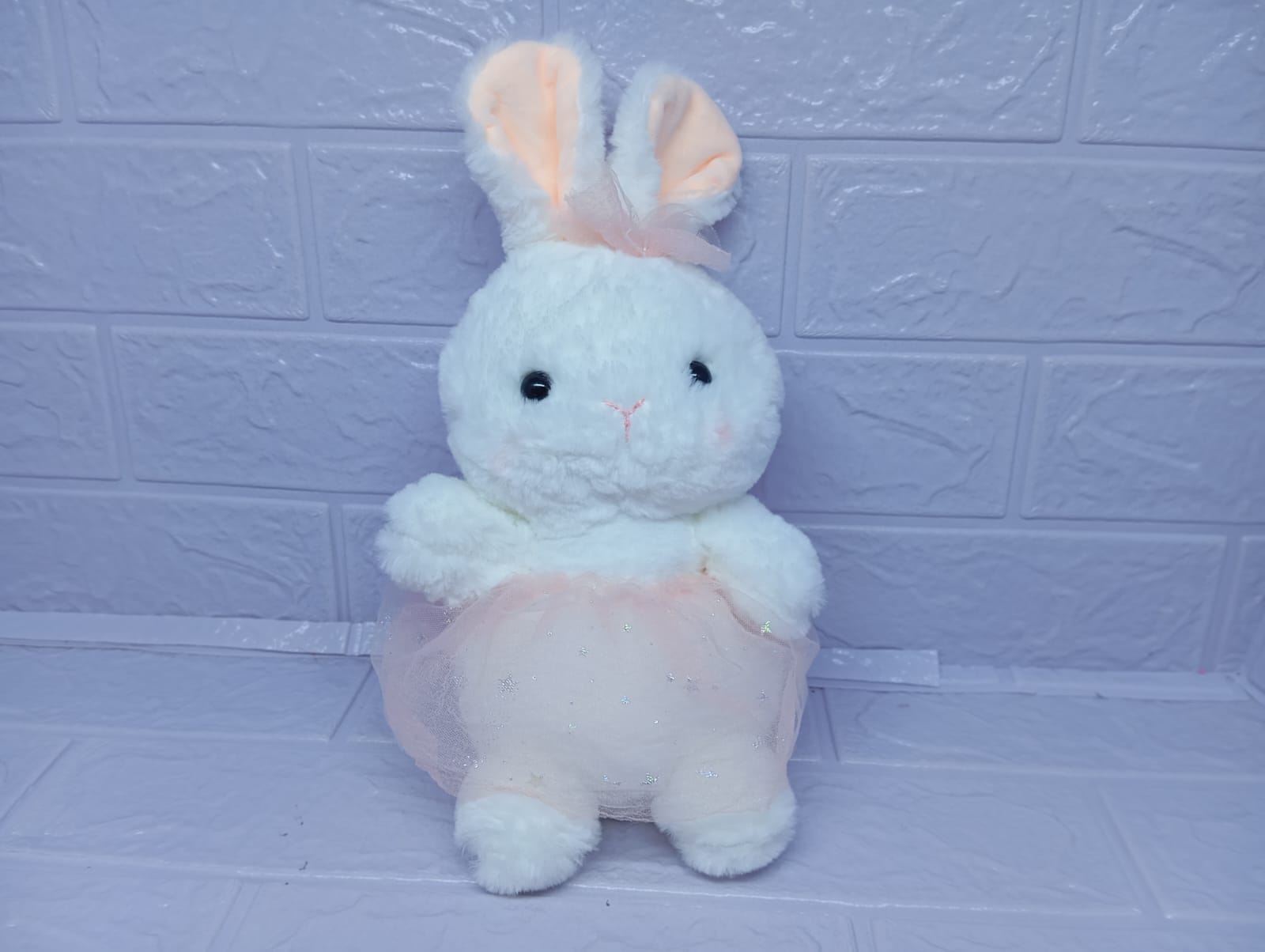 Esta preciosa conejita de 22 cm está vestida con un delicado tul que le da un toque de elegancia y fantasía. Su diseño tierno y suave al tacto la convierte en el detalle perfecto para sorprender con estilo y ternura.