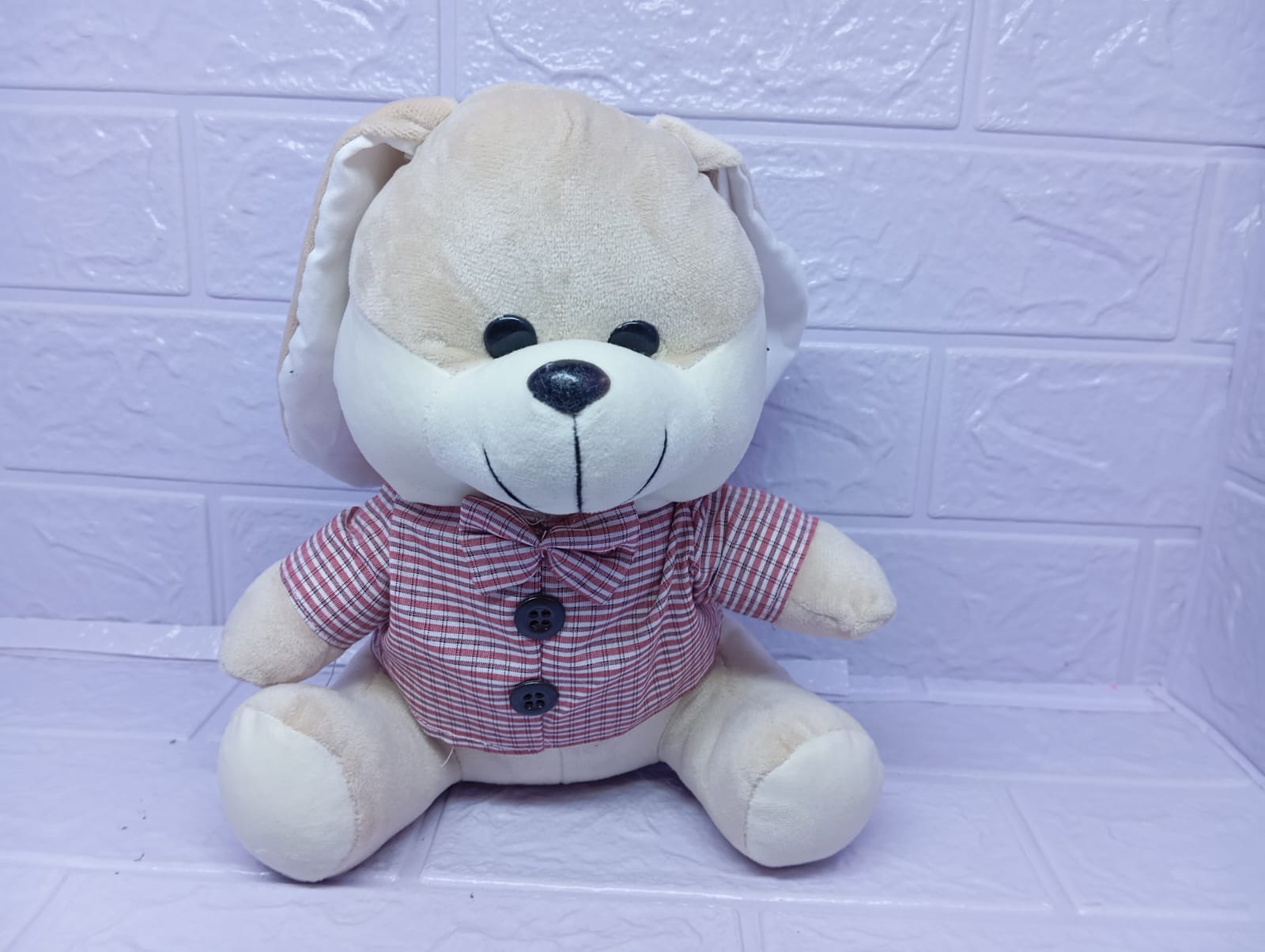 Este adorable conejito de 20 cm luce una camisita encantadora que lo hace aún más especial. Su carita dulce, orejitas largas y textura suavesita lo convierten en el compañero perfecto para regalar o decorar con ternura y estilo.