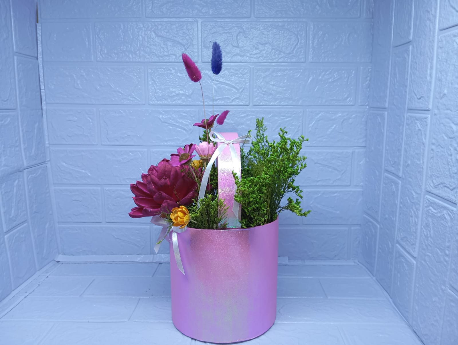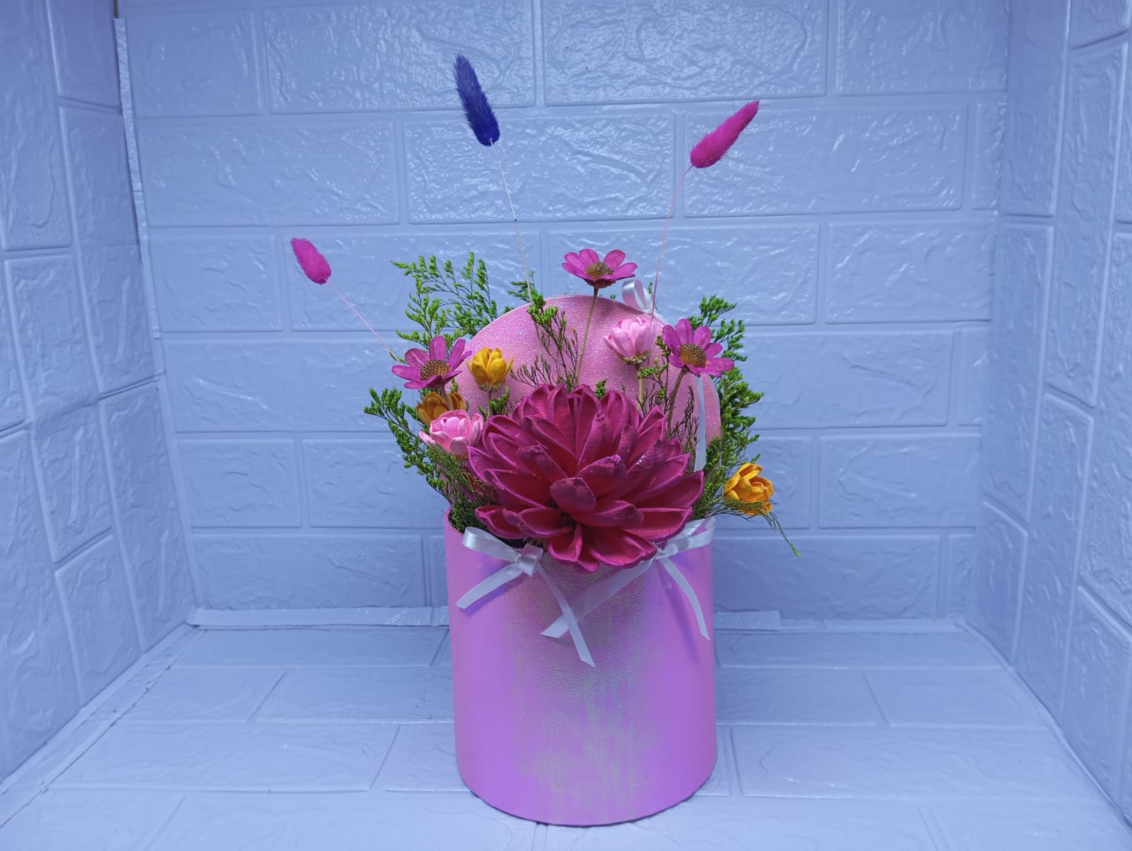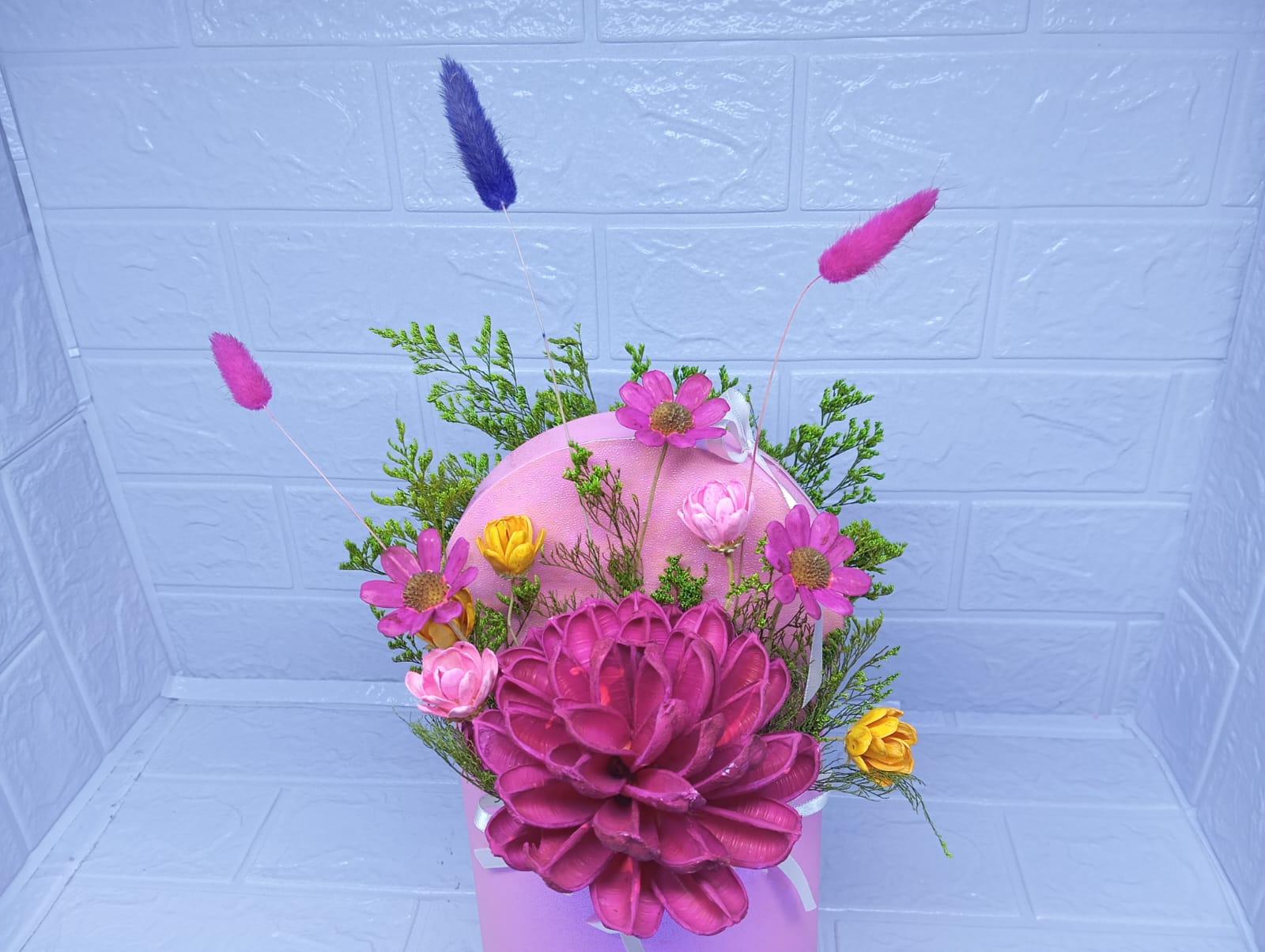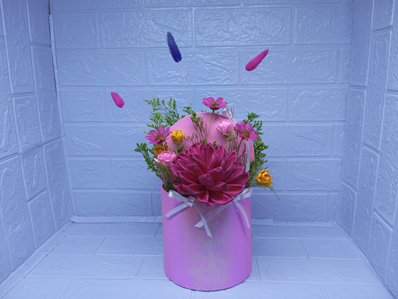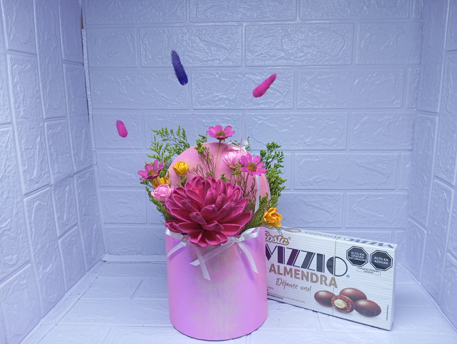 Sorprende con este hermoso box rosado con acabado brillante, decorado con delicadas flores eternas que no se marchitan y conservan su belleza con el tiempo.
