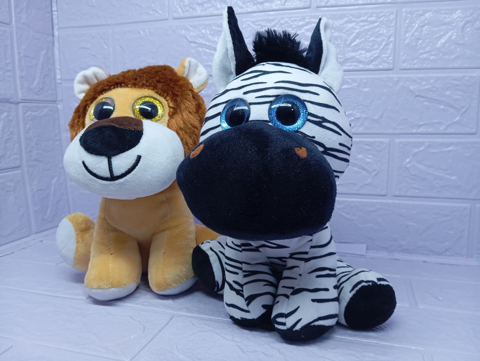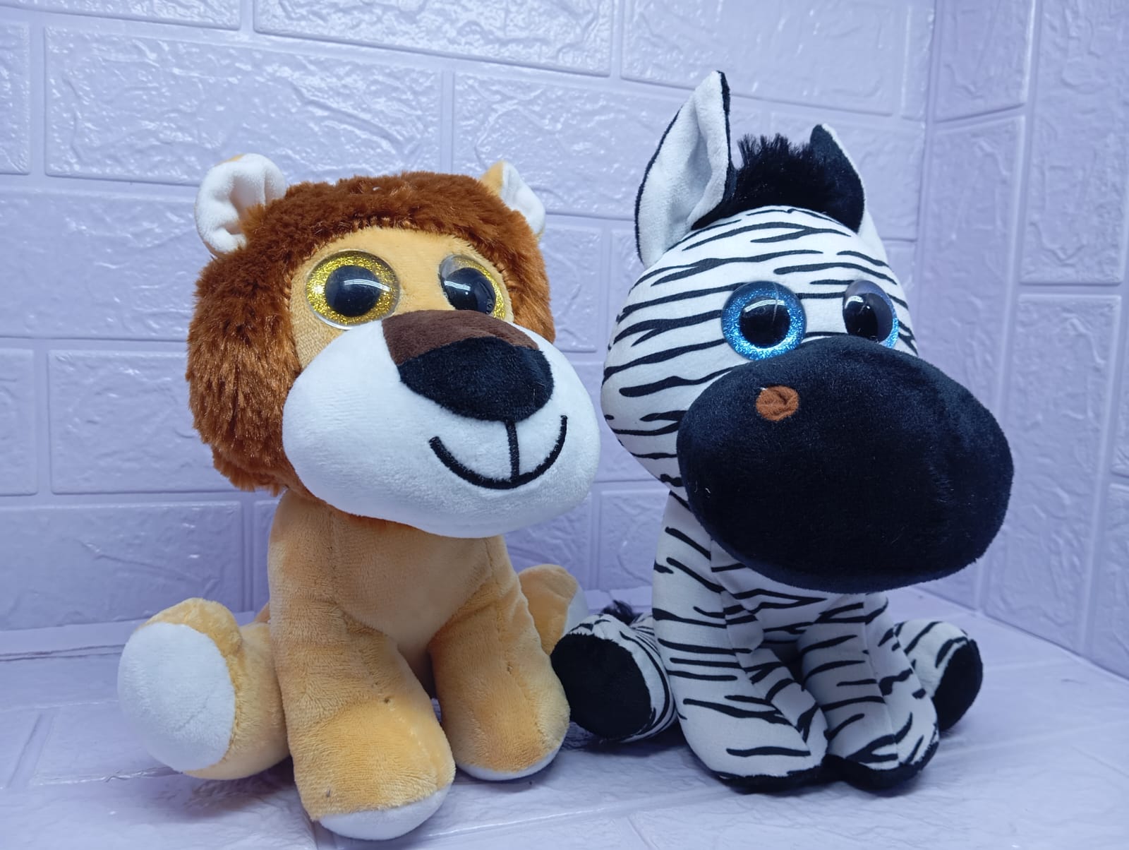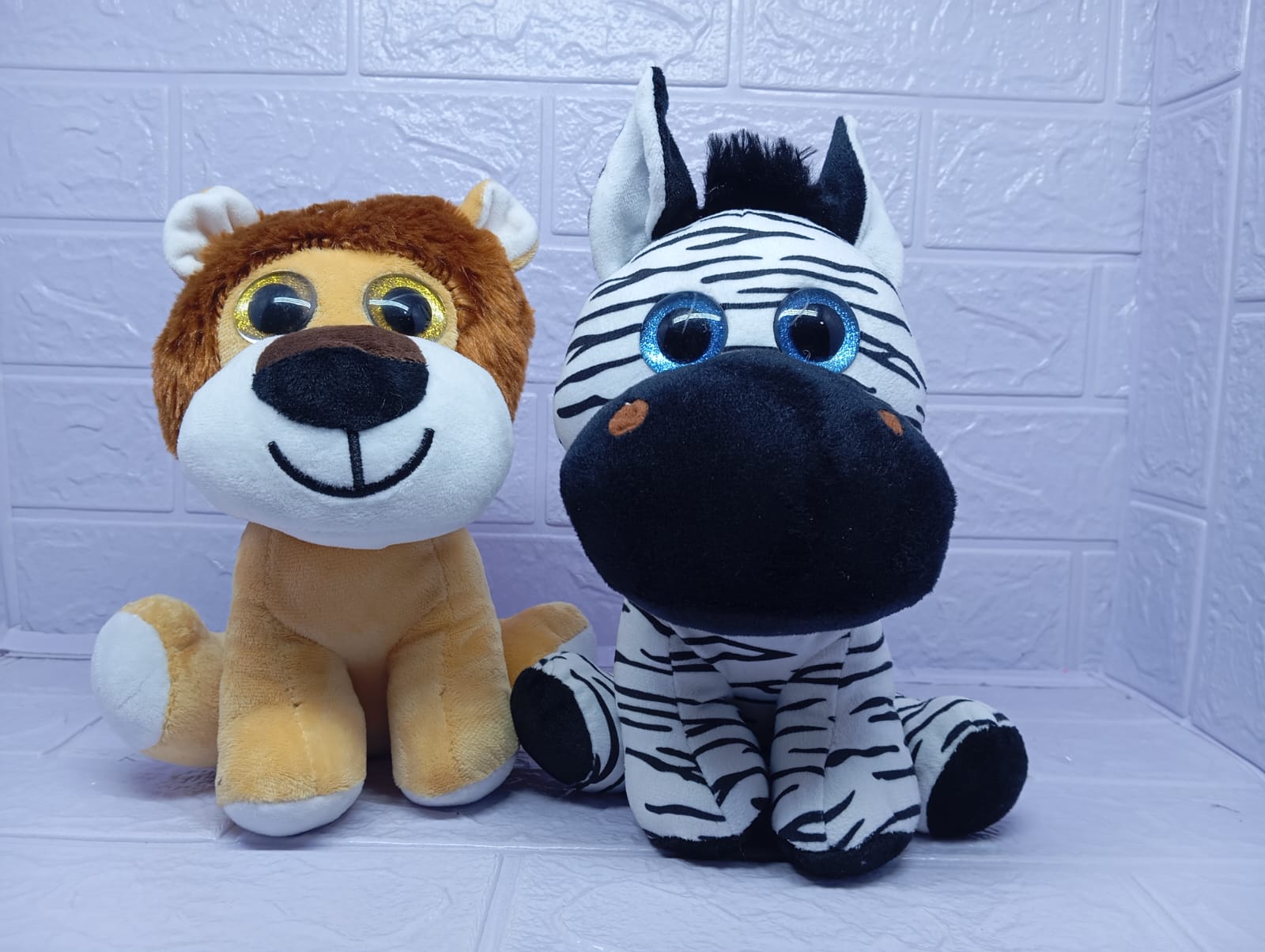 Dos hermosos peluches de león y cebra de 23 cm, suaves y adorables, que emiten sonidos realistas al presionarlos. Un tierno par salvaje ideal para regalar momentos de juego, alegría y ternura.