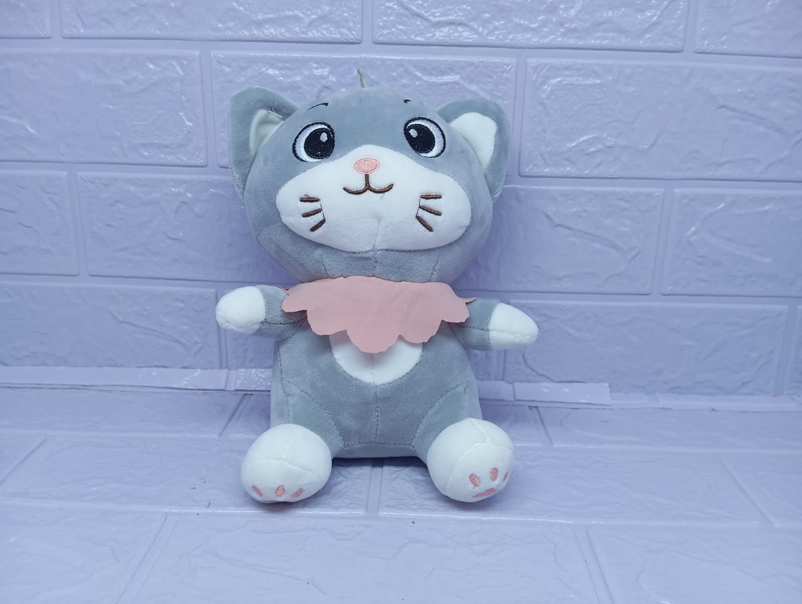 Esta preciosa gatita de 22 cm enamora con su suave pelaje plomo y su delicado pañoleta rosado que resalta su ternura. Pequeña, elegante y con una carita adorable, es el detalle ideal para regalar en cualquier ocasión especial.