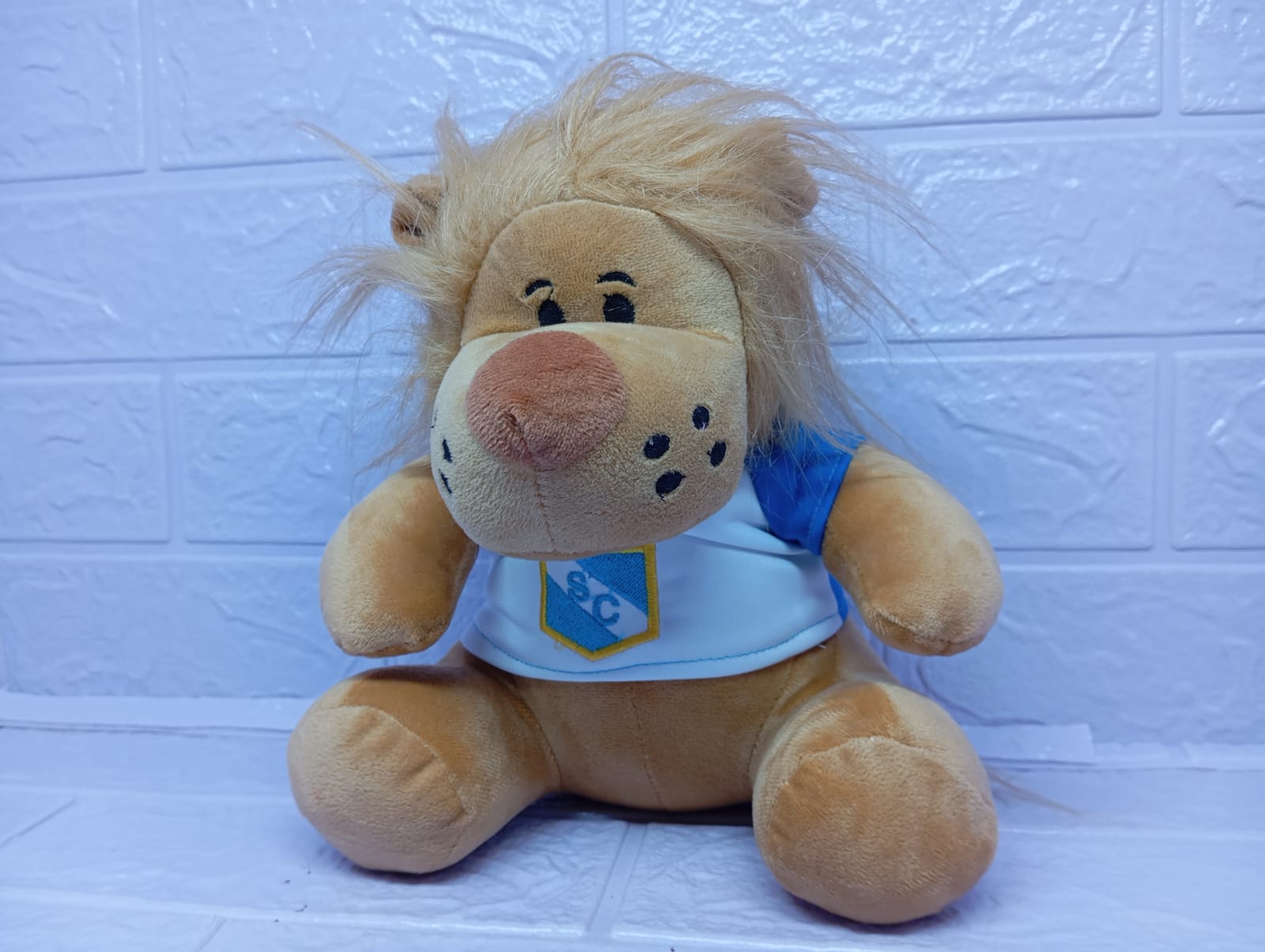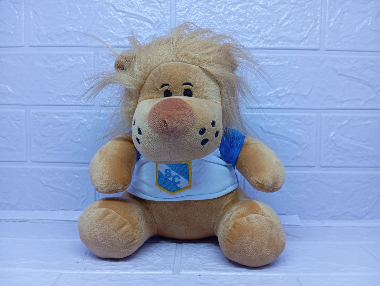 Este valiente leoncito de 20 cm luce con orgullo su camiseta del Club Sporting Cristal, combinando pasión futbolera con dulzura. Es el detalle perfecto para un verdadero fan celeste, ya sea niño o adulto.