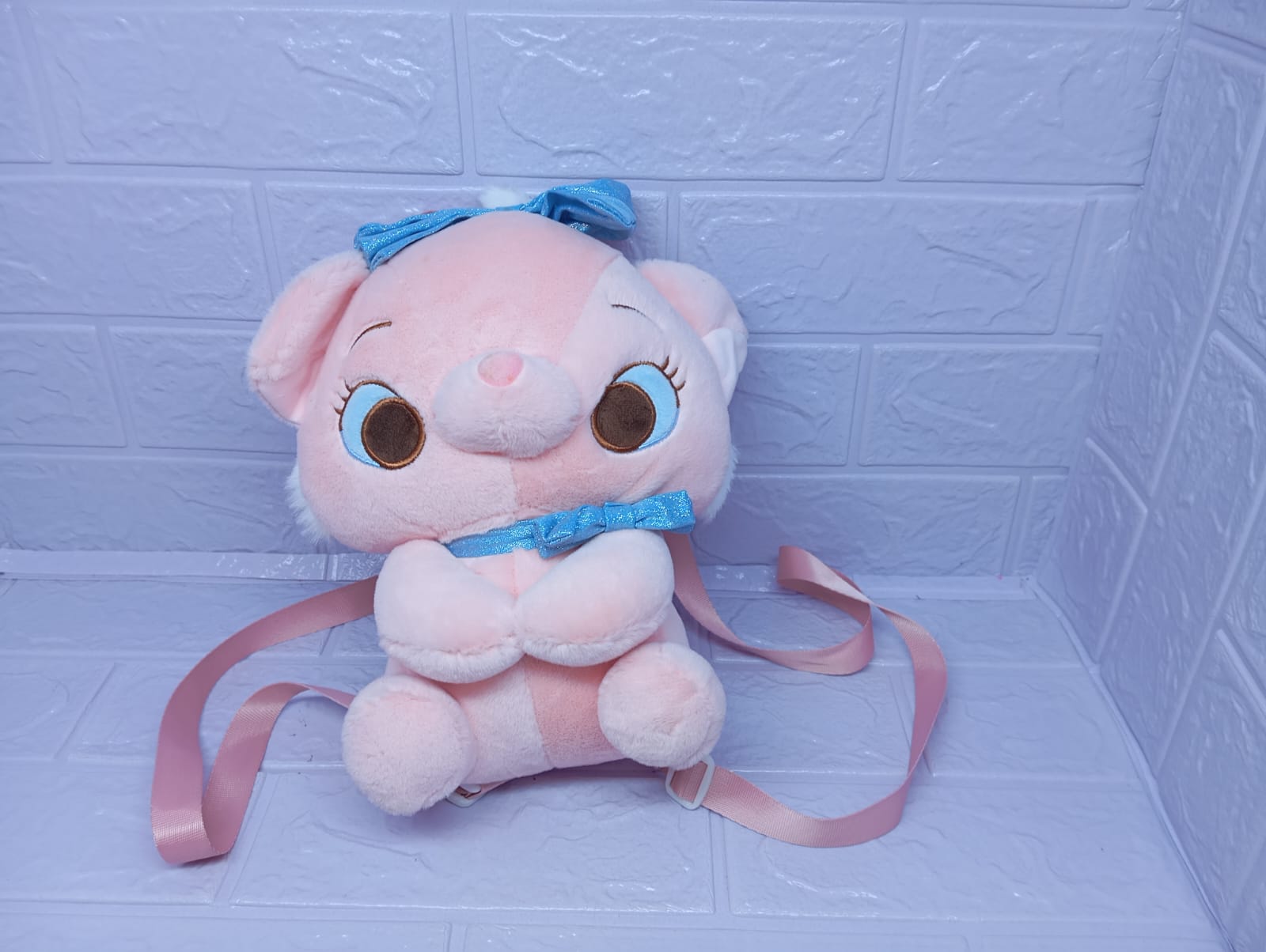 Esta mochila de la Gatita Marie en un suave tono rosado es simplemente preciosa. Con un hermoso lazo turquesa, diseño tierno y materiales suaves al tacto, es perfecta para acompañar a tu niña en sus aventuras diarias con mucho estilo y dulzura.