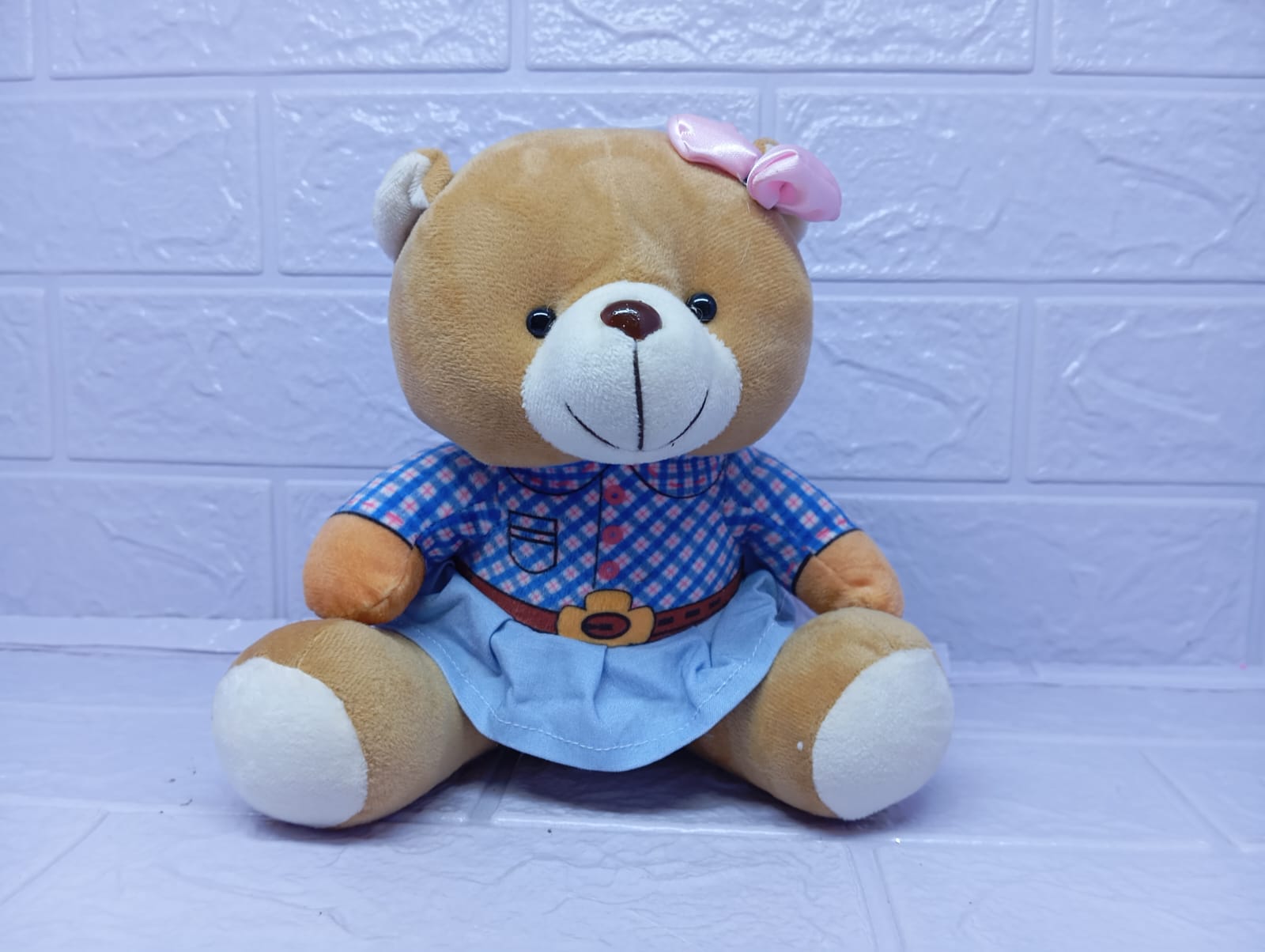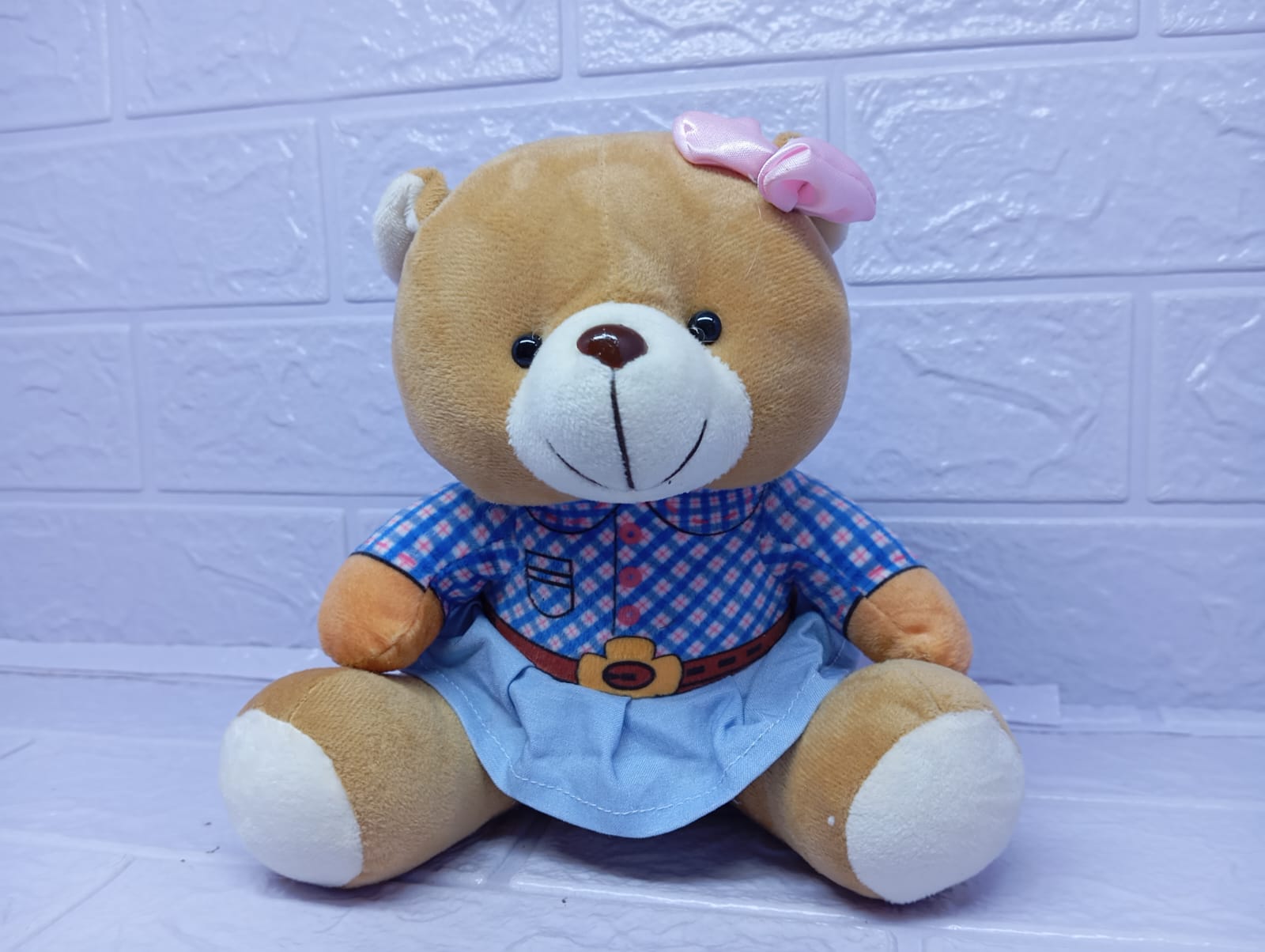 Esta encantadora osita de 18 cm luce un delicado vestido, ideal para regalar con ternura. Su expresión dulce y su textura suavesita la convierten en el detalle perfecto para niñas, celebraciones especiales o simplemente para decir “te quiero”.