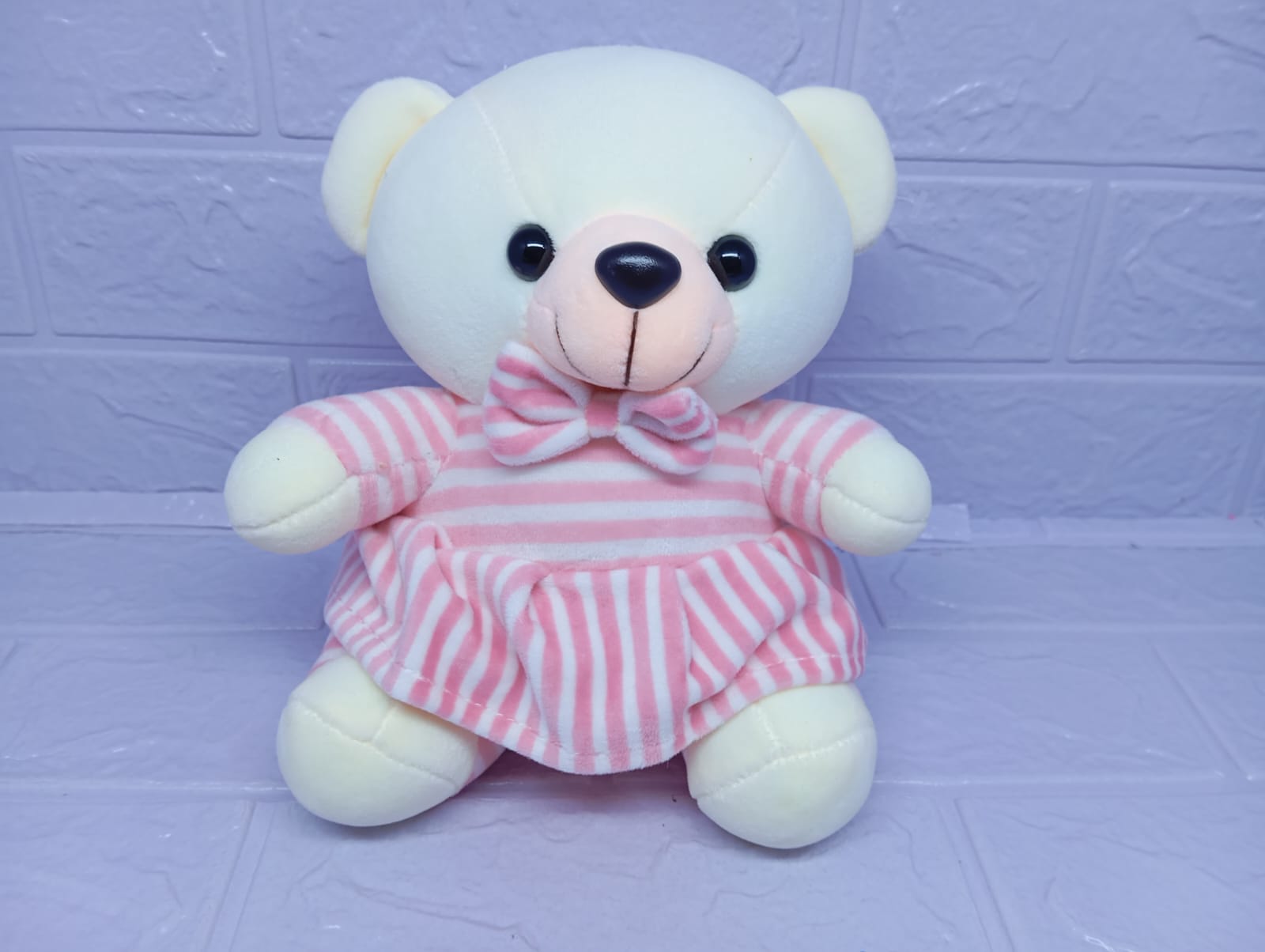 Esta adorable osita de 23 cm vestida con un encantador vestido a rayas es el detalle perfecto para robar sonrisas. Su tamaño práctico, su diseño delicado y su expresión dulce la convierten en el regalito ideal para ocasiones especiales, recuerdos, cumpleaños o simplemente para decir “pensé en ti”.