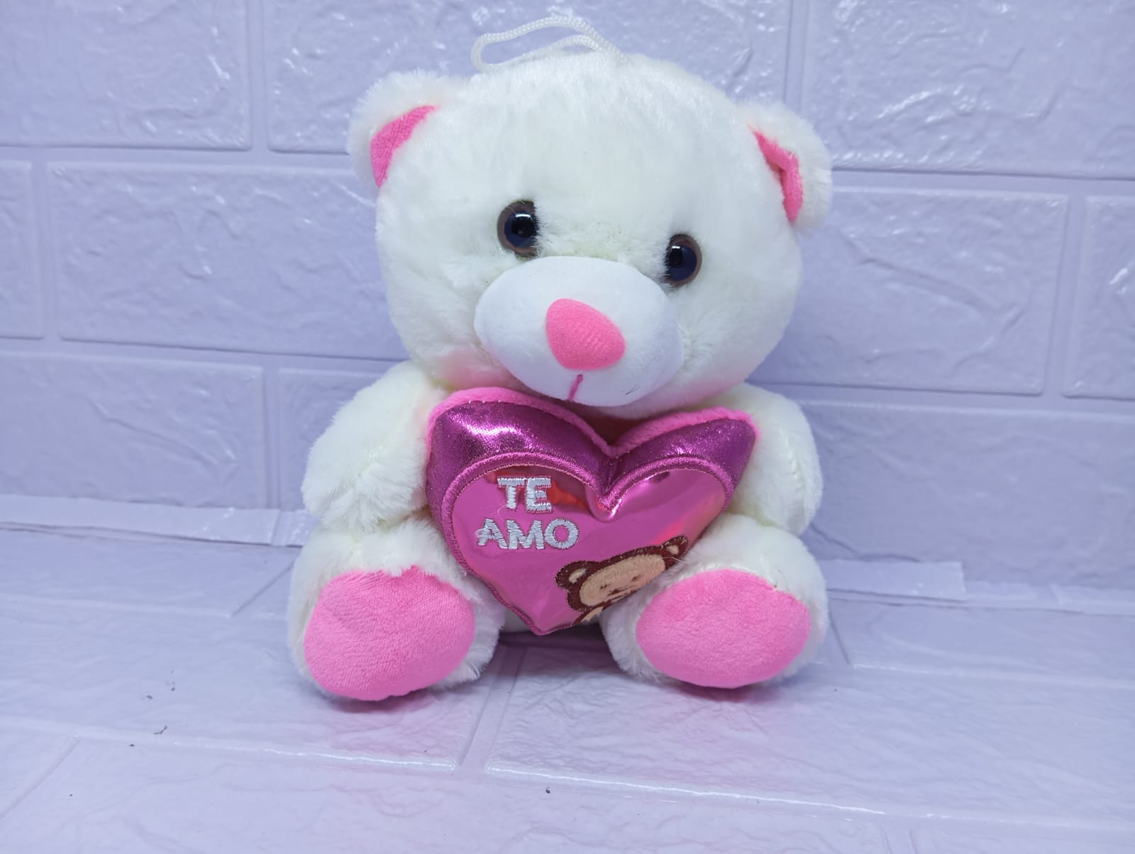Este adorable osito de 20 cm sostiene un corazón con acabado brilloso que lo hace aún más especial. Su textura suavesita, diseño encantador y toque de brillo lo convierten en el detalle perfecto para sorprender con amor en cualquier ocasión.