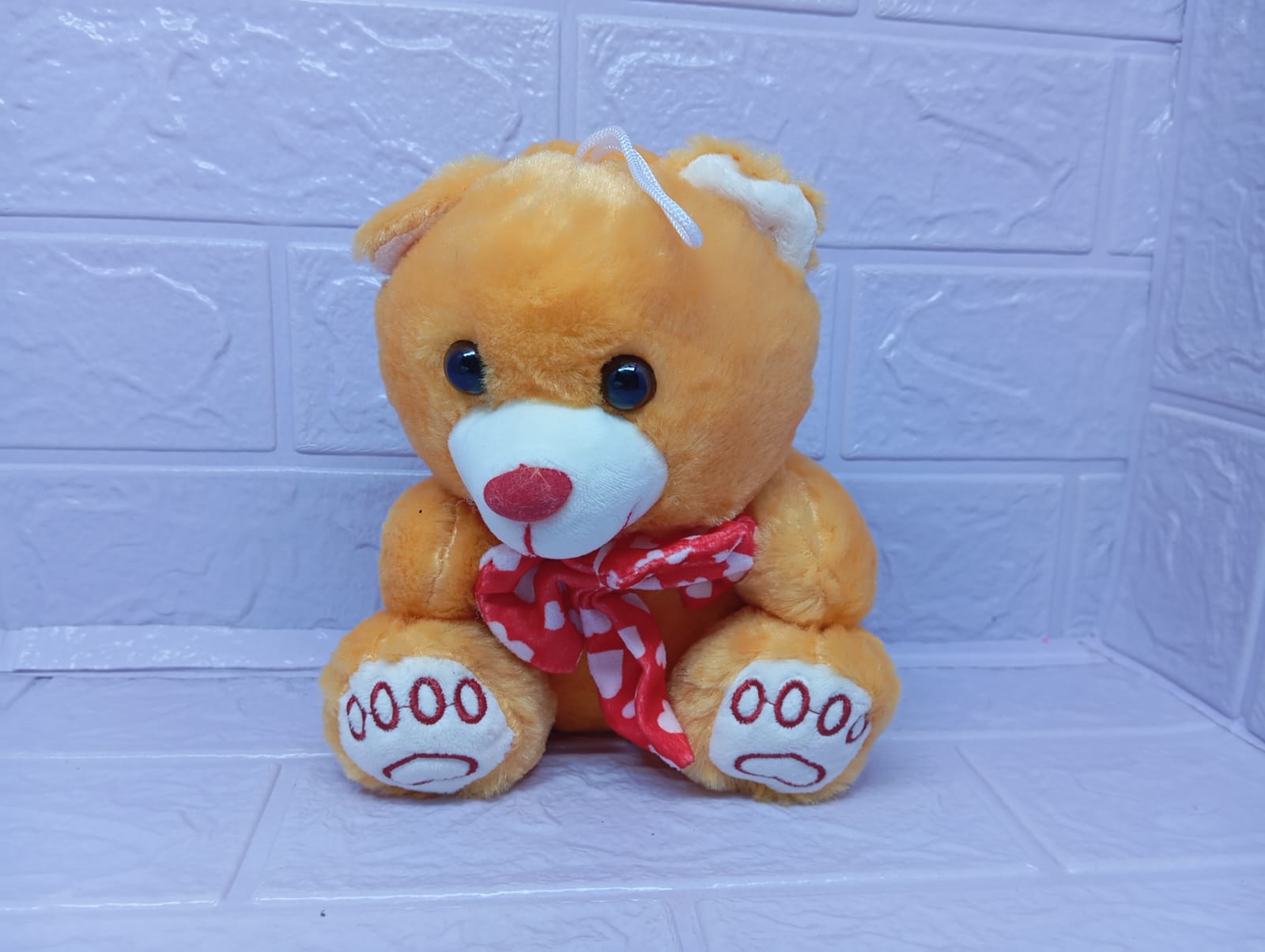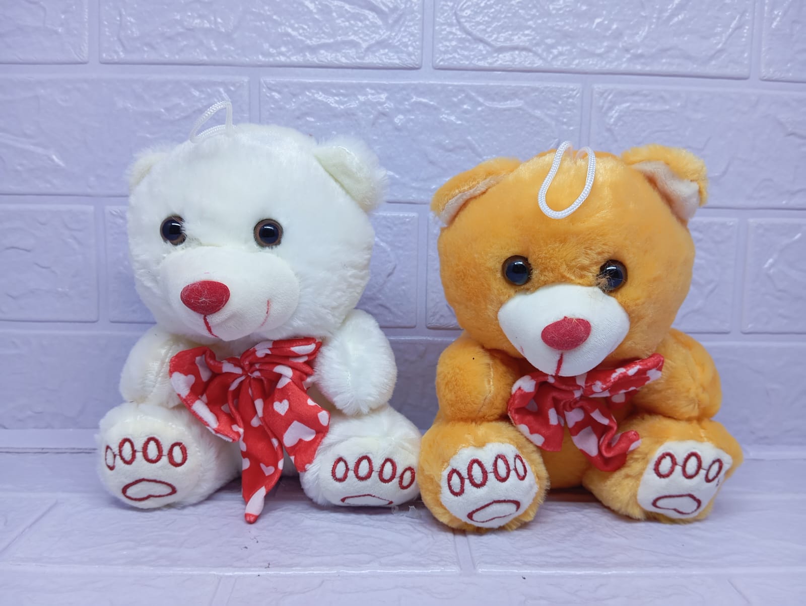 Este encantador osito de 20 cm luce un delicado lazo decorativo que resalta su ternura. Su textura suavesita y su tamaño práctico lo hacen ideal para regalar en cualquier ocasión especial.