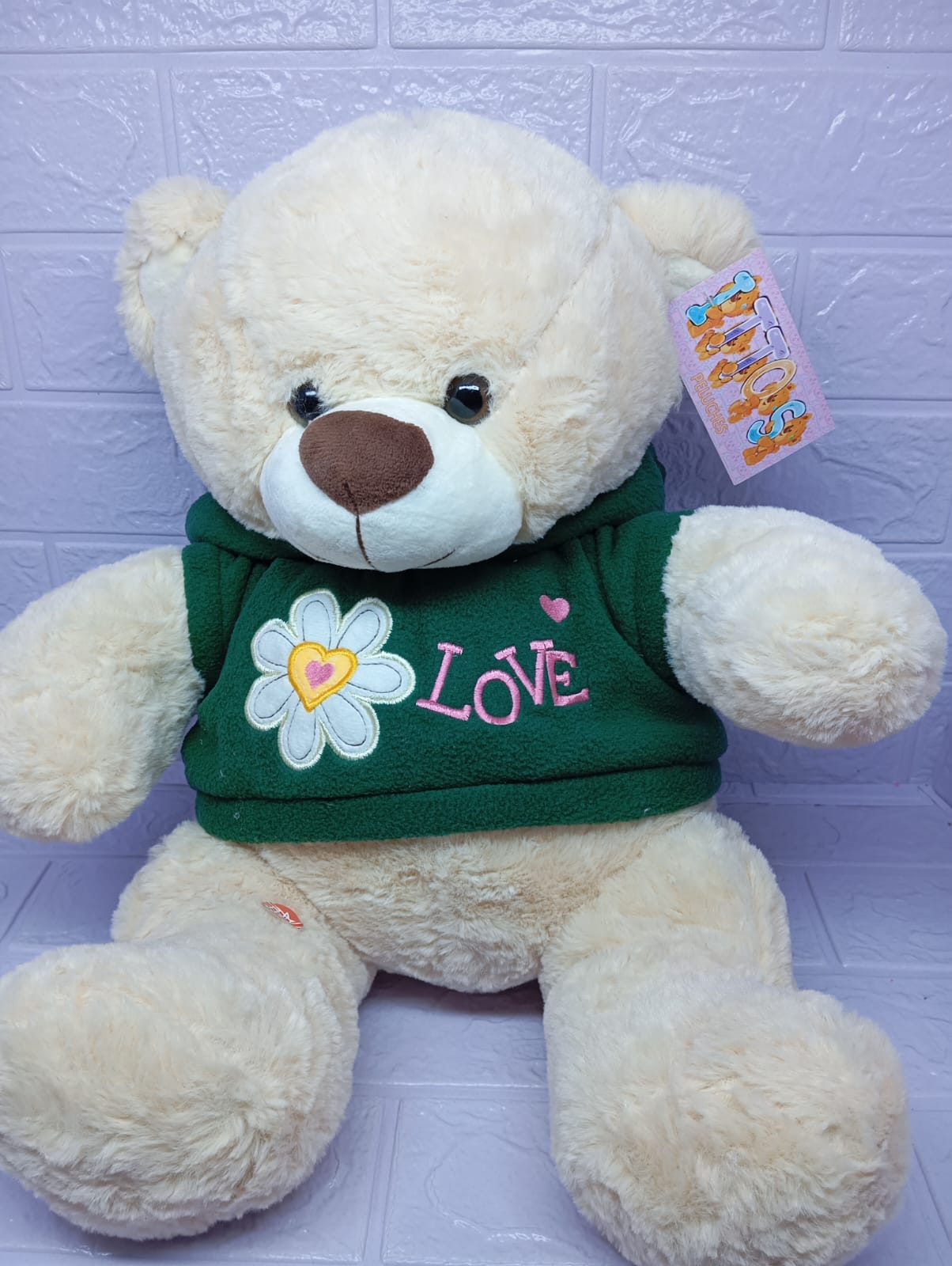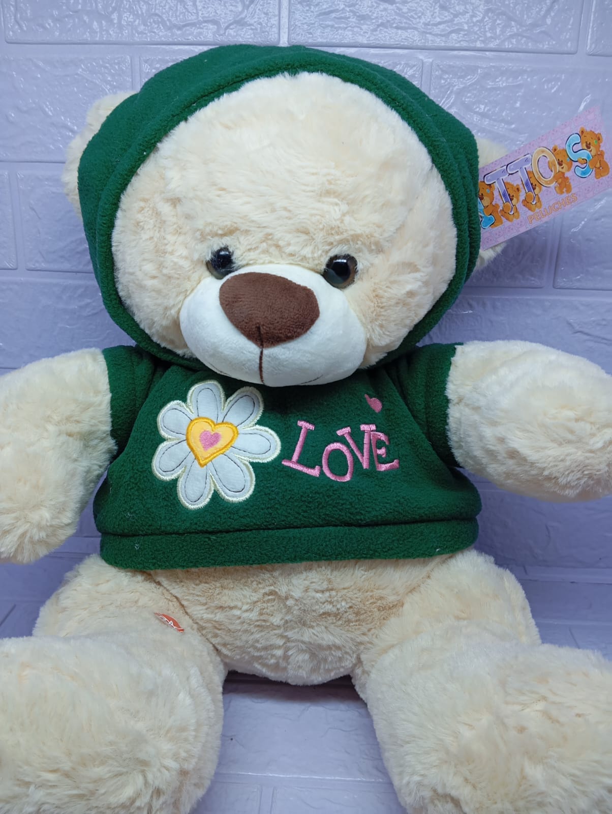 Oso de peluche de 45 cm, hermoso y original, con una encantadora capucha que le da un toque moderno y divertido. Al presionarlo, activa una dulce melodía que llena de ternura y alegría cualquier momento. Un detalle musical perfecto para sorprender con amor.