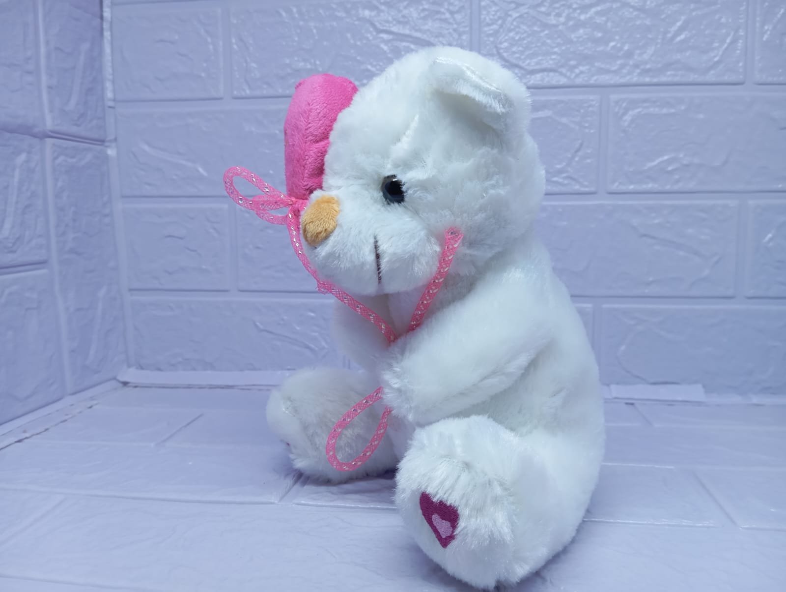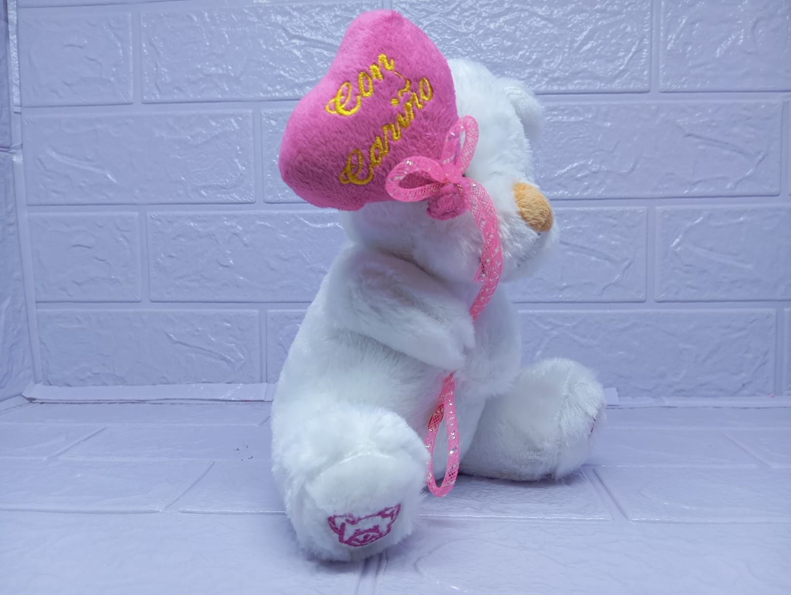 Este adorable osito de 20 cm sostiene un globo en forma de corazón, perfecto para transmitir amor en los detalles. Su carita dulce, tamaño ideal y textura suavesita lo convierten en un regalo especial para sorprender a quien más quieres.