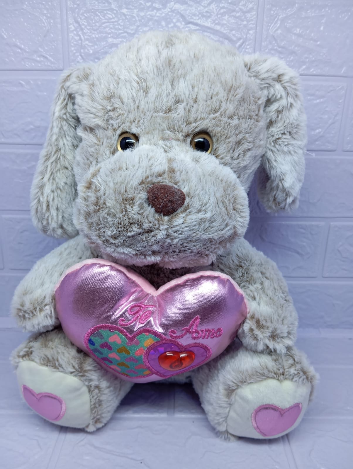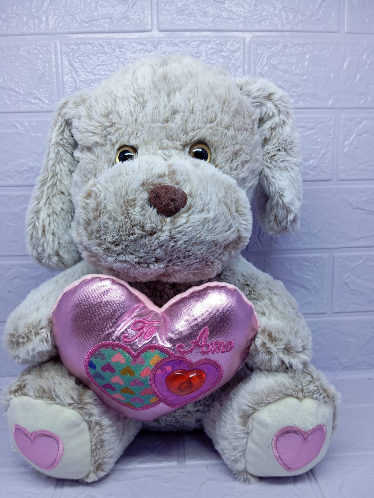 Tierno perrito de peluche color rosado de 35 cm, con un dulce corazón que emite una melodía al presionarlo. Suave, adorable y lleno de amor, es el detalle musical perfecto para sorprender con ternura en cualquier ocasión especial.