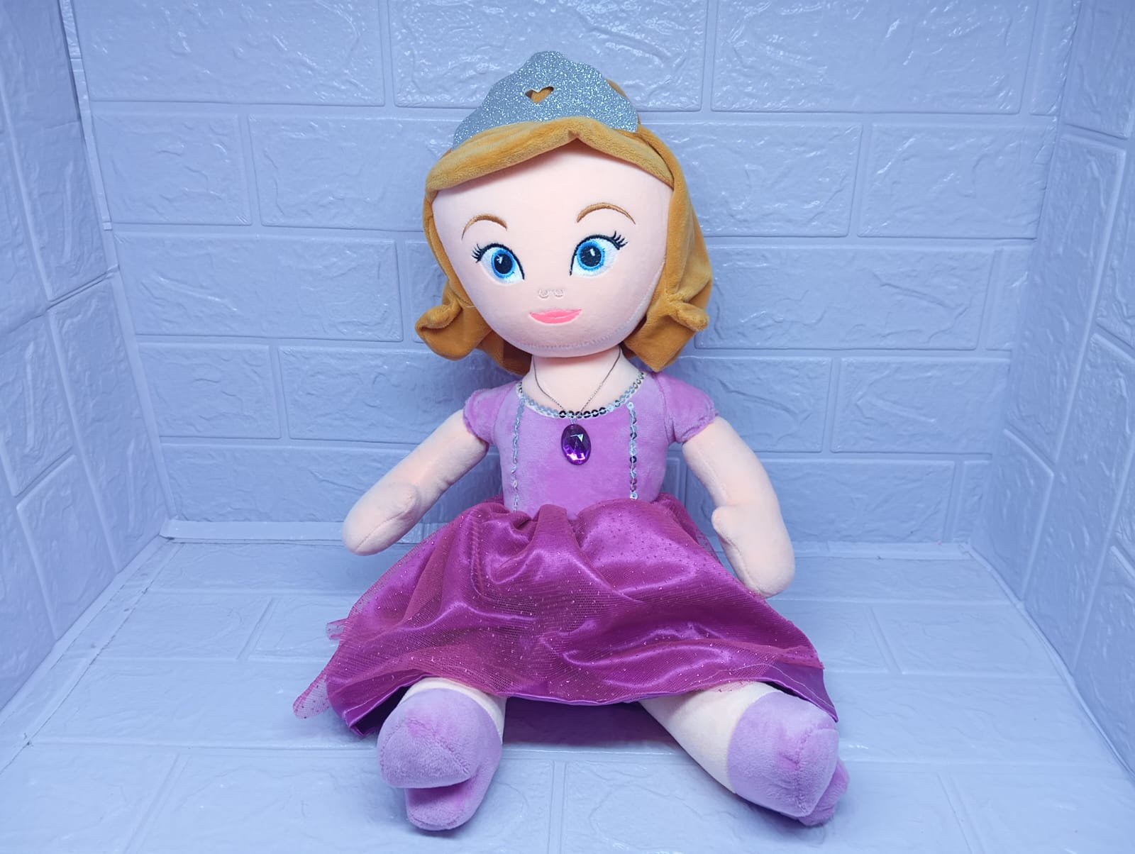 Esta hermosa peluche de 45 cm trae a la encantadora Princesa Sofía con su clásico vestido violeta, corona brillante y una expresión llena de ternura. Ideal para las pequeñas soñadoras que aman los cuentos de hadas y los momentos mágicos.