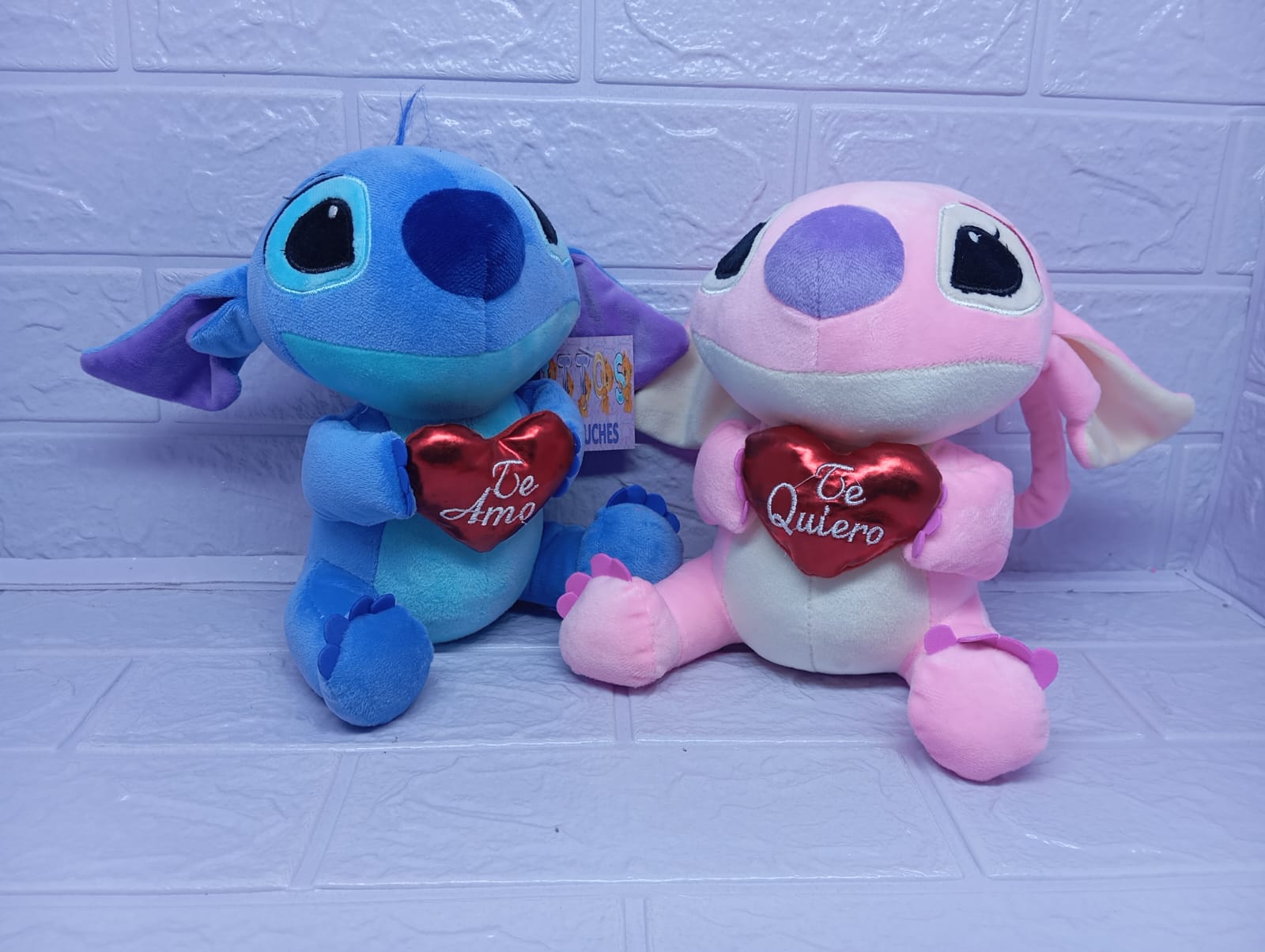 Hermoso juego de peluches de Stitch y Angel de 23 cm, una pareja encantadora que comparte un tierno corazón. Suaves, adorables y llenos de amor, son el detalle perfecto para celebrar el cariño con un toque mágico y especial.