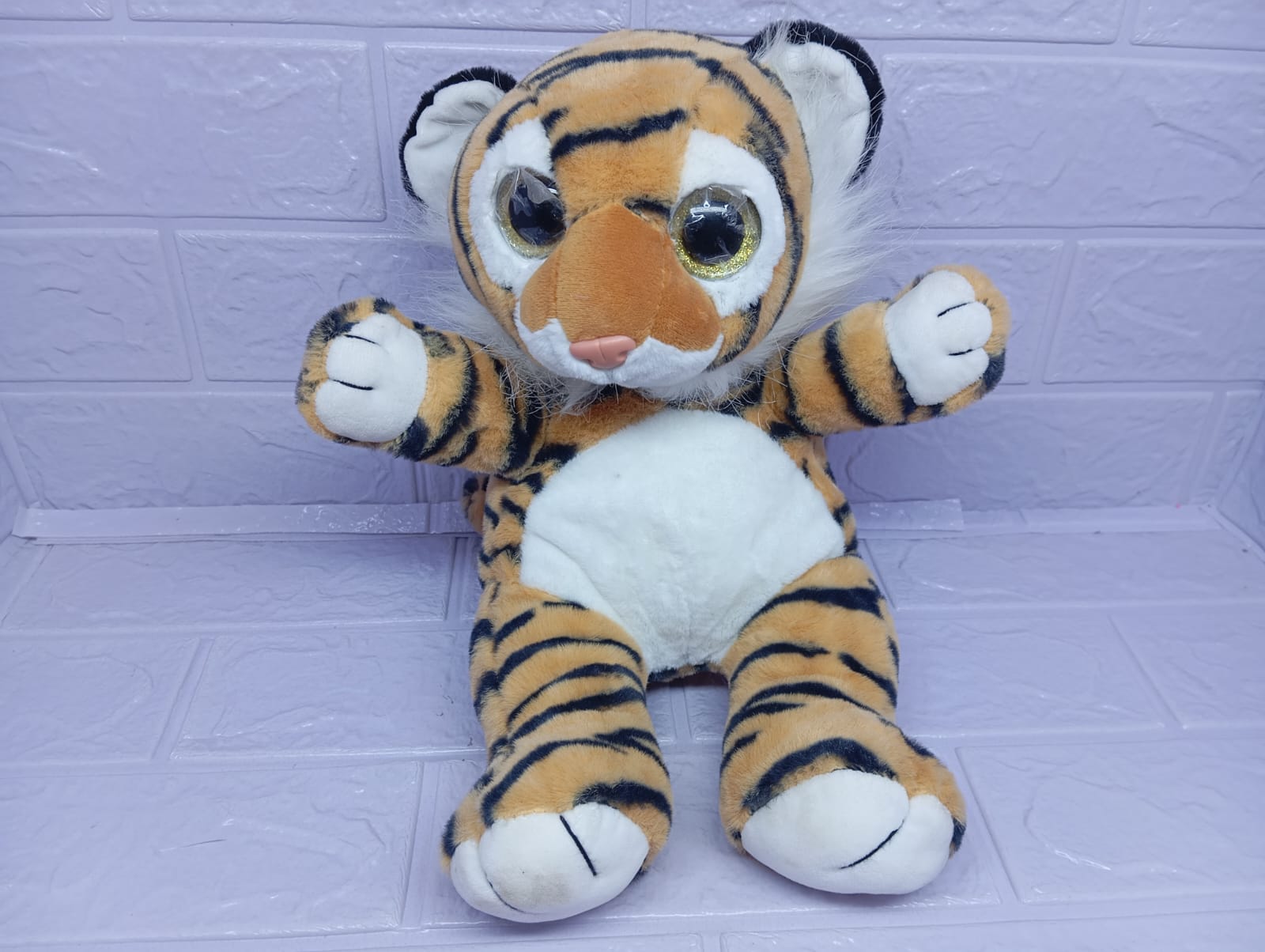 Precioso peluche de tigre de 35 cm, con un suave y esponjoso pelaje en tonos naranja y negro. Su mirada tierna y su textura abrazable lo convierten en el compañero perfecto para grandes y chicos.