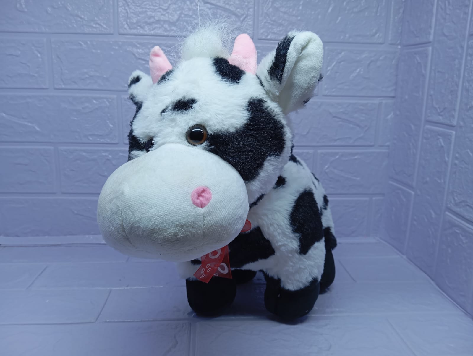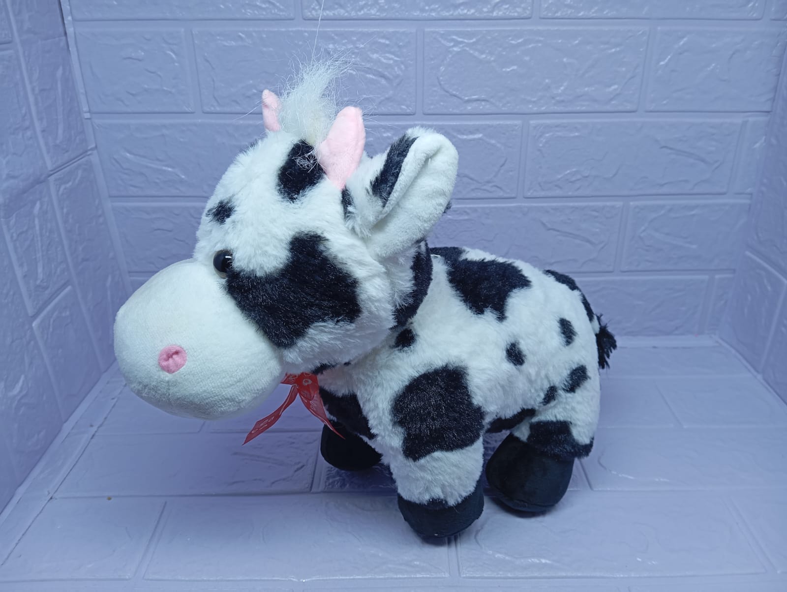 Esta adorable vaca de 28 cm en posición de cuatro patas encanta con su diseño realista y su carita tierna. Su textura suavesita y detalles bien cuidados la hacen perfecta para decorar, regalar o acompañar en juegos llenos de imaginación.